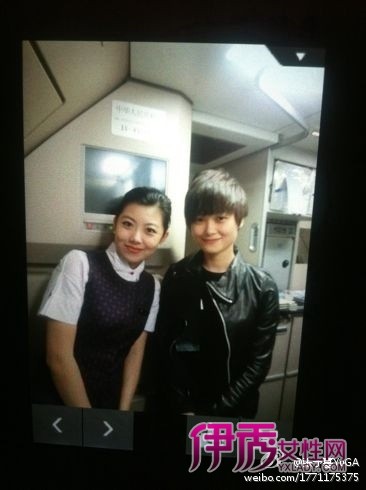李宇春 俏丽空姐与李宇春合照,心里美滋滋。