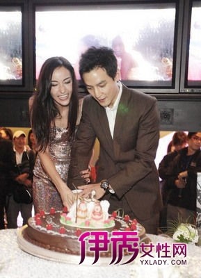 吴彦祖夫妇一起切蛋糕庆祝