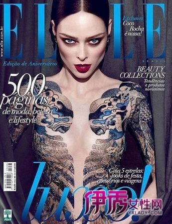 超模Coco Rocha2012年5月巴西版《Elle》封面。事实上,Coco在拍摄时是穿了一层肉色薄衣的,但杂志为了封面效果,生生得把这层衣服PS掉了。对此Coco表示很失望,已着手开始通过法律途径去解决。