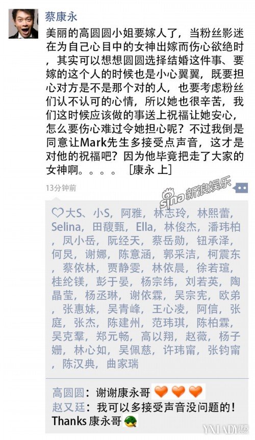 高圆圆赵又廷大婚在即,结婚当日“又圆”朋友圈在忙啥?小编无责任YY“又圆”朋友圈:点赞?耍贫?抛砖引玉,如有雷同纯属巧合哦~~(微博红人最后加码放送)
