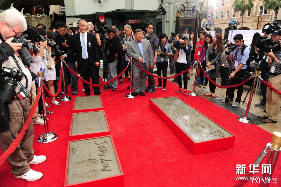 6月3日,导演林诣彬和演员赵薇、黄晓明(从左至右)在洛杉矶好莱坞TCL中国剧院门口留下手印。新华社记者 张超群 摄 6月3日,导演林诣彬和演员赵薇、黄晓明(从左至右)在洛杉矶好莱坞TCL中国剧院门口出席留印仪式。
