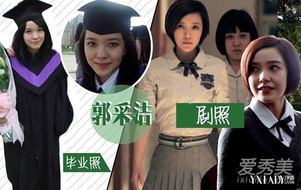 2008年毕业的郭采洁还是长发飘飘的小女生模样。刚出道的她也确实是纯情小女生的路线,穿着学士服的她显然还是一副没有成熟的模样,宽大的外套几乎拖地,把她包裹的严严实实。