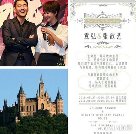 袁弘喜帖今日惊喜曝光,他将于5月30号与现女友张歆艺在德国的古堡举办婚礼!地点是世界的十大承包之一的德国的霍亨索伦城堡(Burg Hohenzollern)呢!