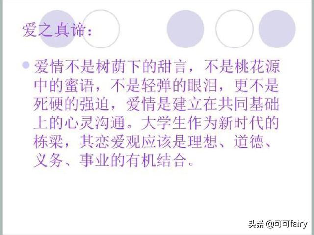 恋爱是未来寻找志同道合、白头偕老的终身伴侣,而不是为了安慰解闷,寻找刺激,更不是单纯为了性的满足。恋爱对象的选择是一个复杂的过程,不能忽视了经济、政治、文化、个性等因素,但是共同的理想的指向、共同的品德和情操是最根本的。恋爱动机的好坏,直接关系的恋爱的成功与否。大学生作为新时代的桥梁,其恋爱观应该是理想、道德、事业和x.a的有机结合。 与学习、恋爱与集体、恋爱与道德、恋爱与博爱的关系。